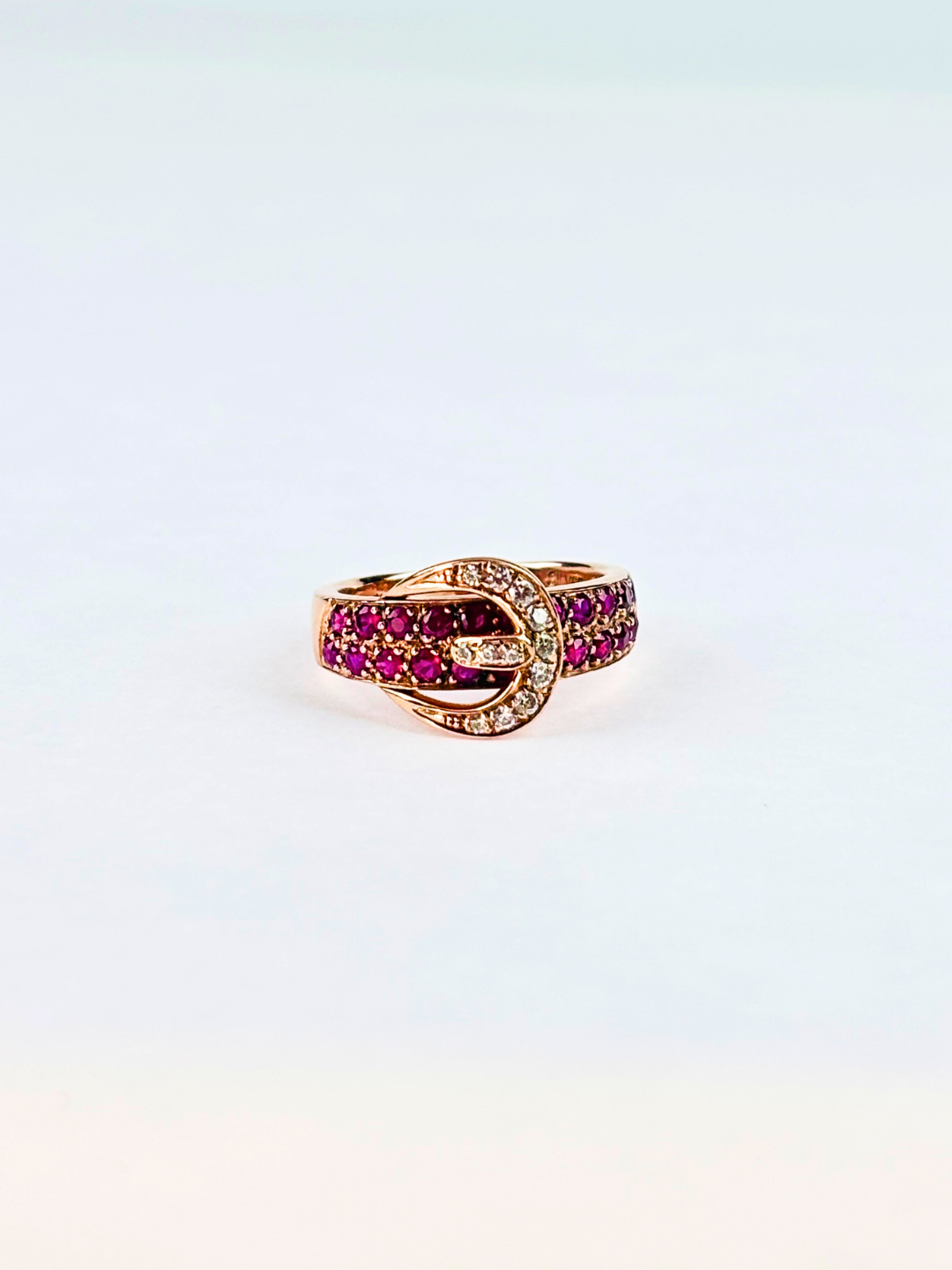 【限定1点】シルバー・ルビーCZベルトモチーフリング/5号