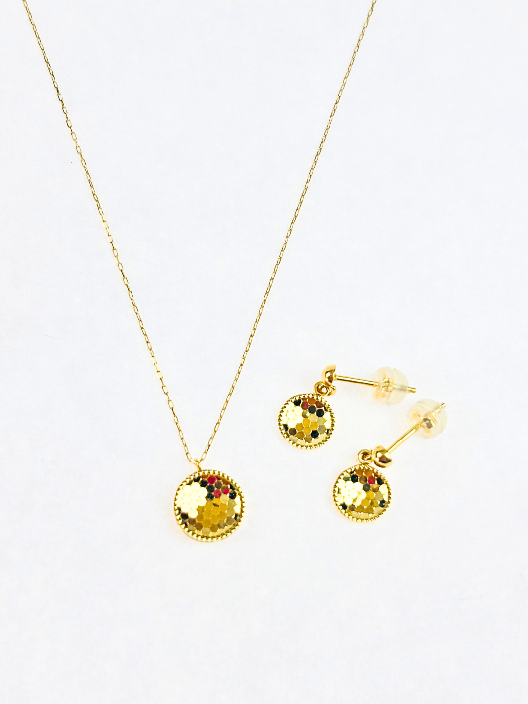【限定2点】K18・YGラウンドペンダント/ピアスセット