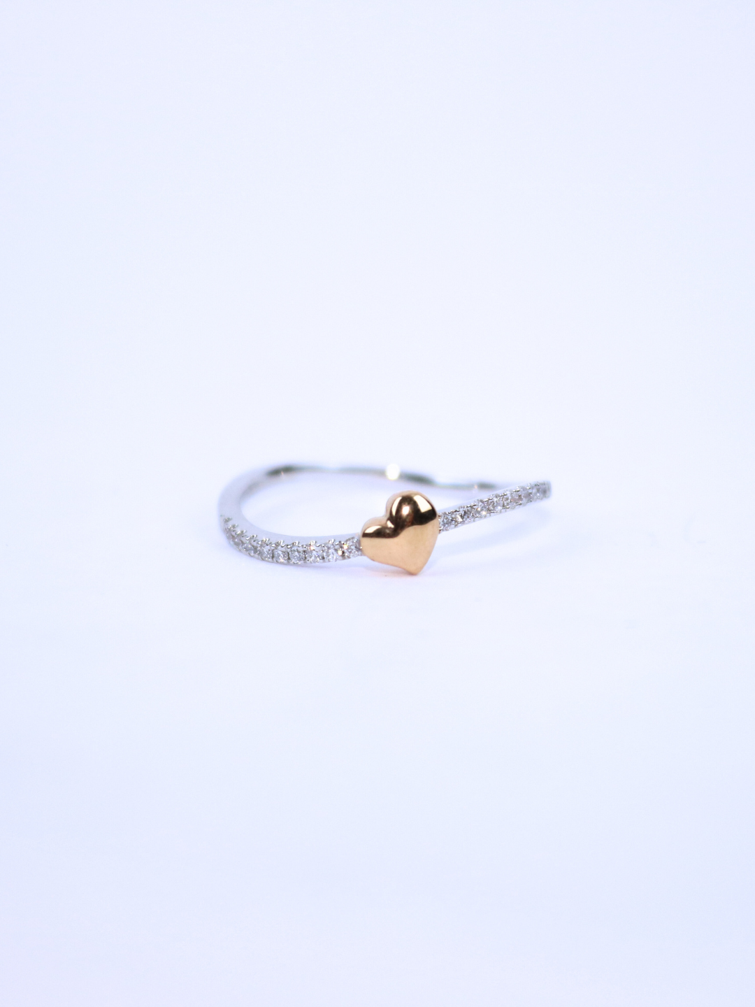 【限定1点】K18・WG/PGカーブダイヤハートリング