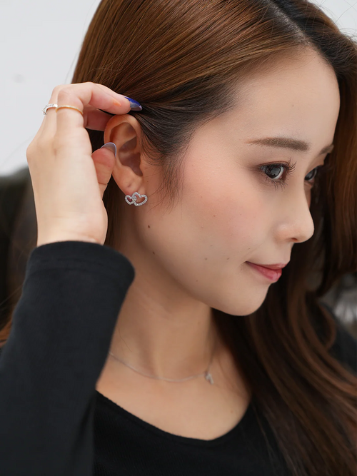 大小のハートが寄り添い、耳元でさりげなく輝くダブルハートピアス。
