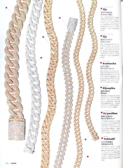 K18・WGダイヤ喜平ブレスレットが、雑誌LEON 2025年12月号【第25巻第12号通巻289号(10月24日発売)】225ページに掲載されました。