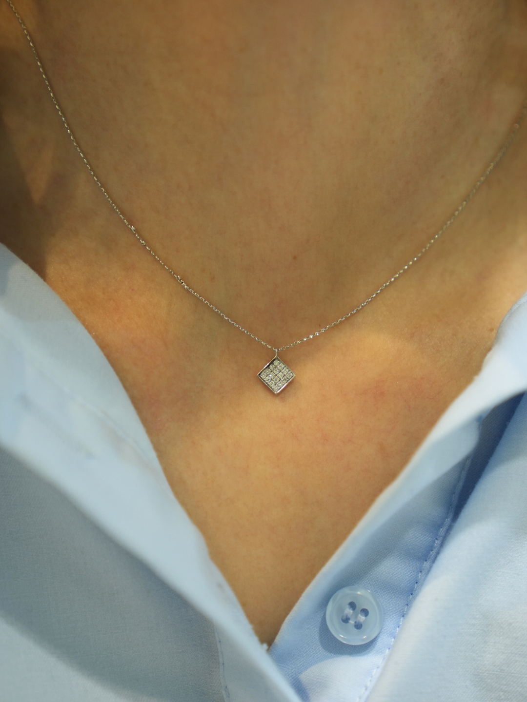 【限定1点】K18wg・スクエアダイヤペンダント