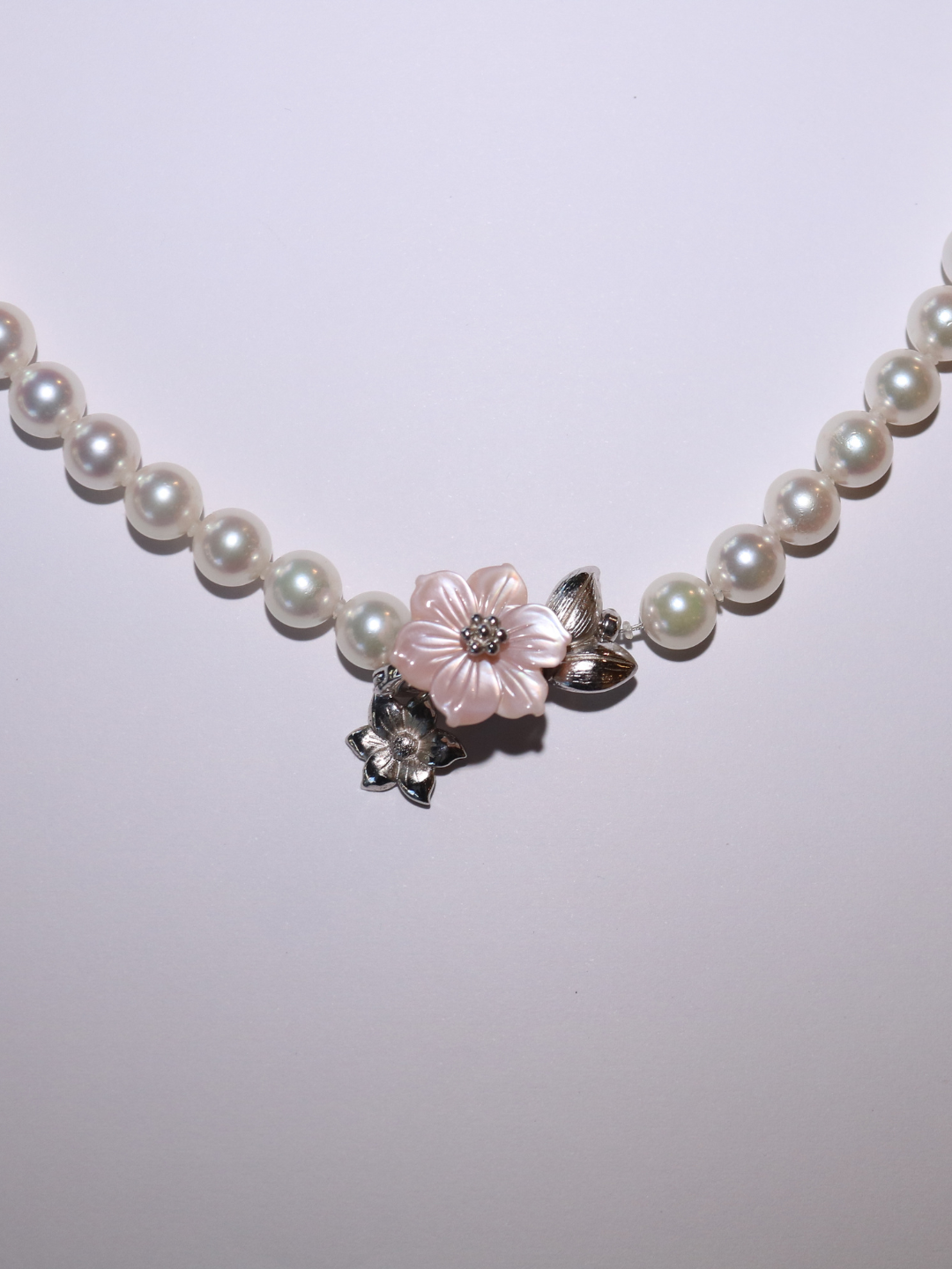 和珠パール マグネットネックレス(SV/フラワーモチーフ)