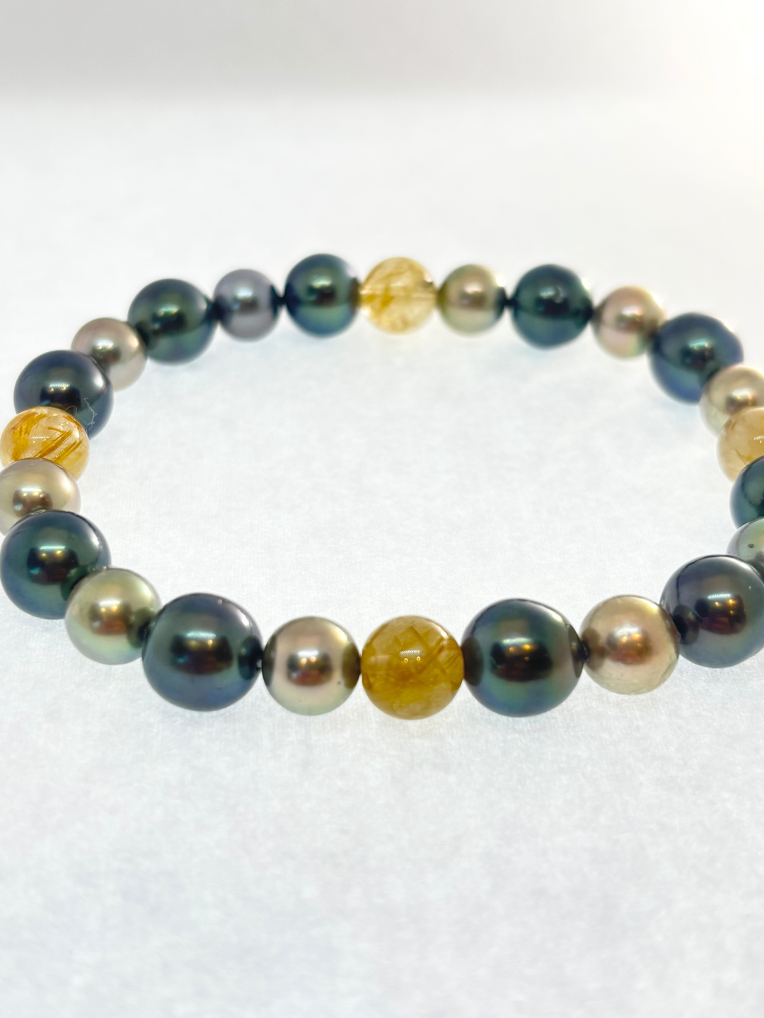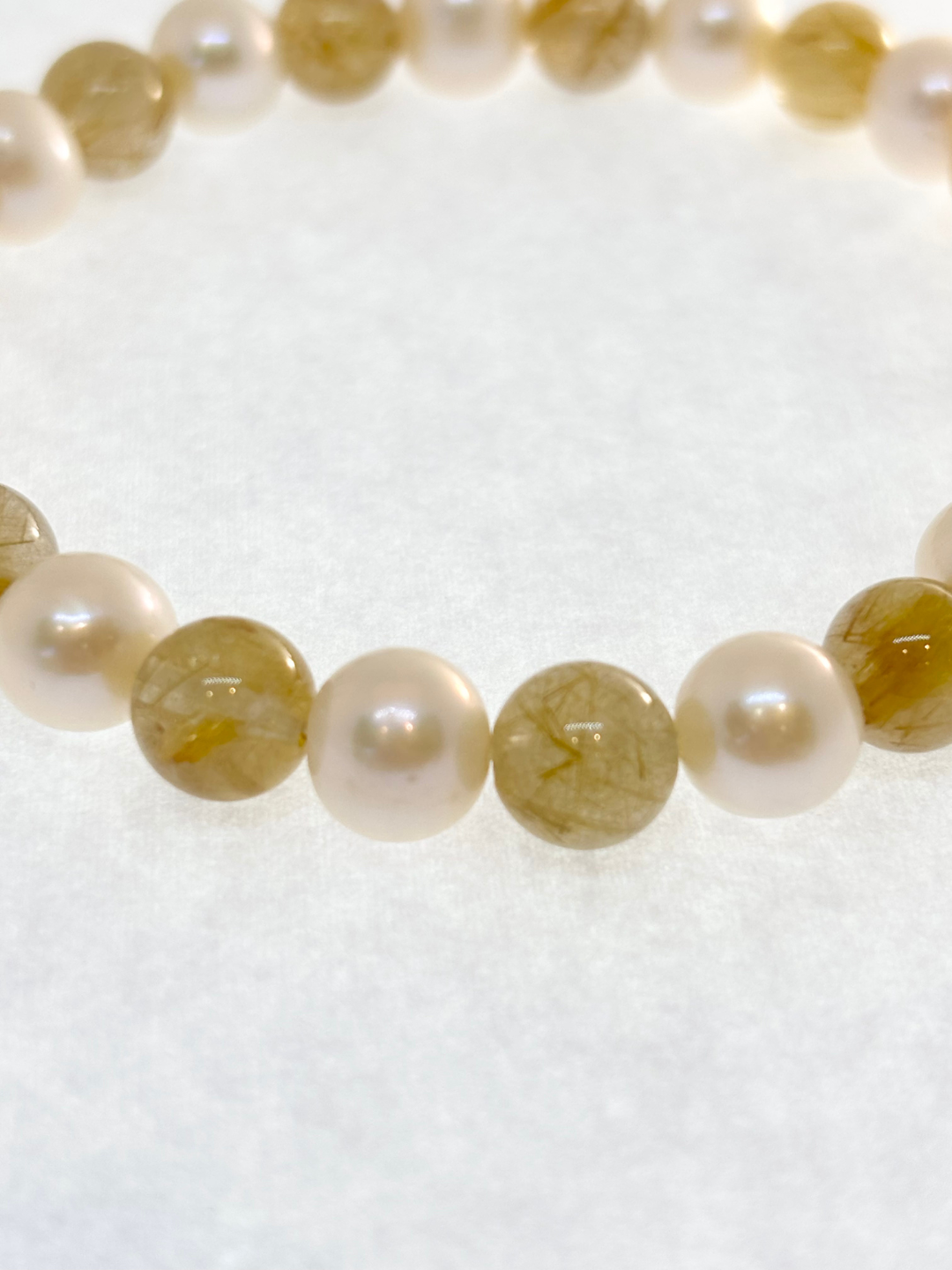 南洋パール × ルチルクォーツ ×アコヤパールブレスレット