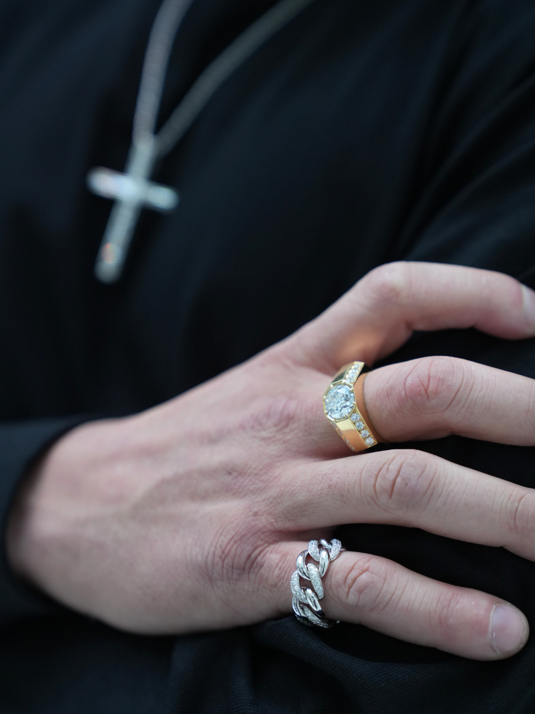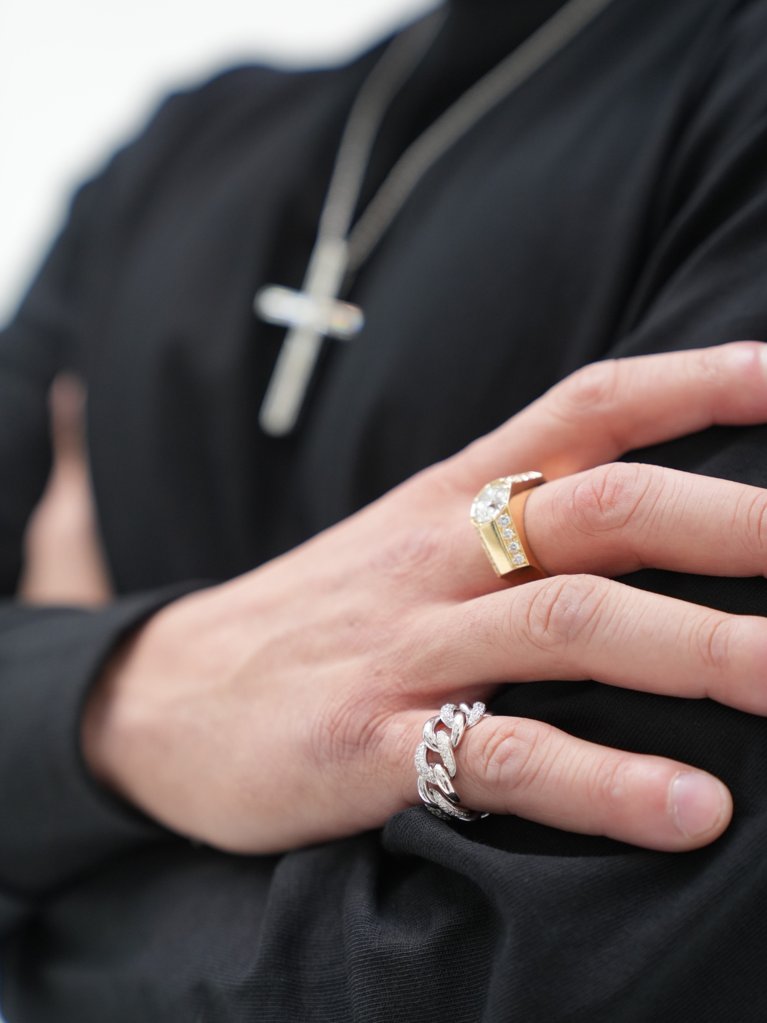 K18・YGダイヤクロスデザインリング/13号